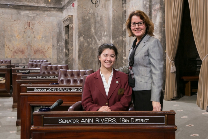 Pictured above: Sophomore Symphony Koss, left, with Sen. Ann Rivers. Photo courtesy of the Washington State Legislature.
